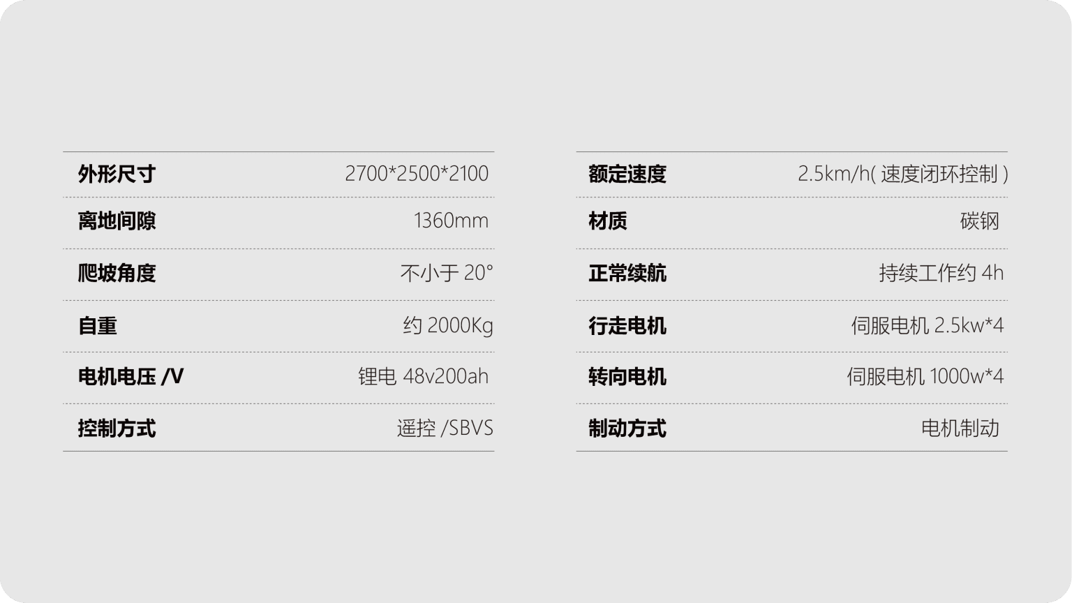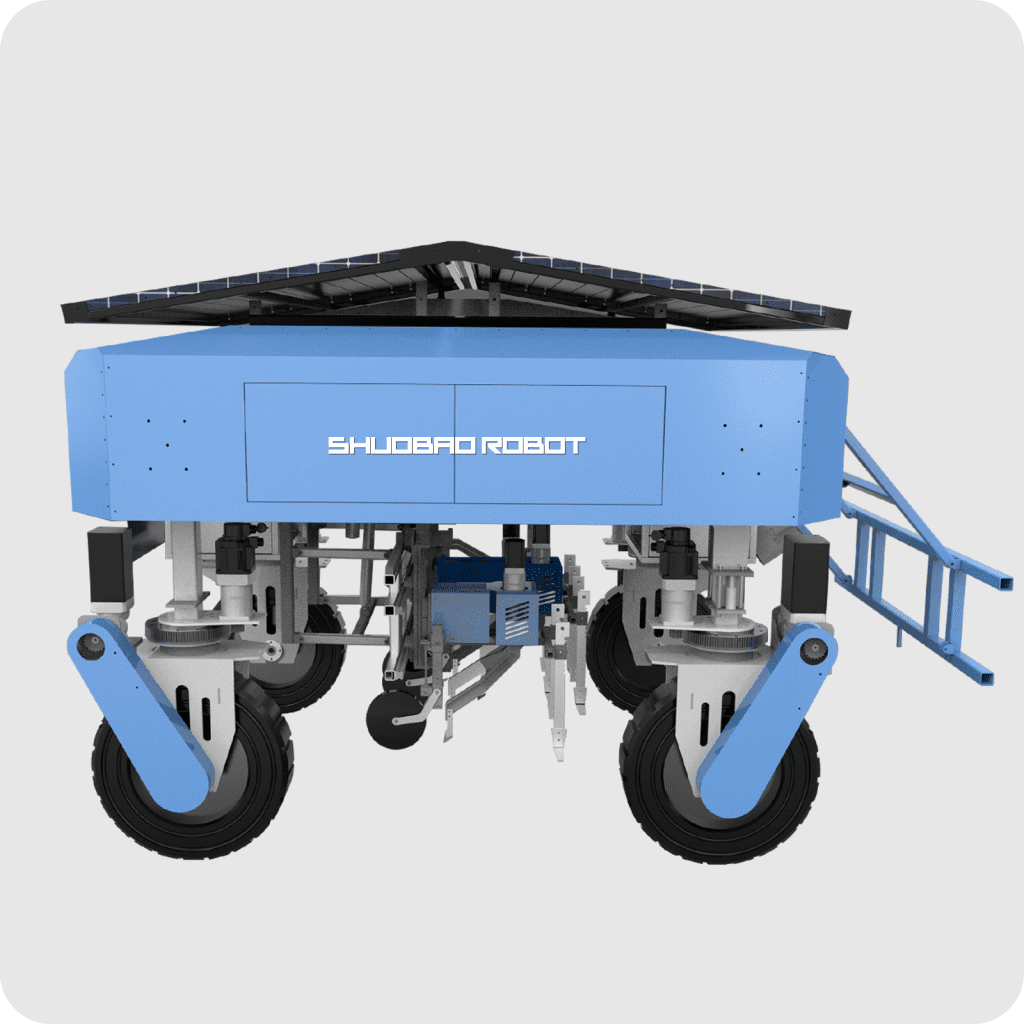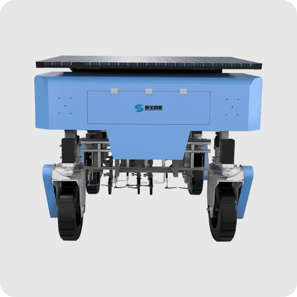 Smart tractors are designed specifically for large fields and orchards, integrating autonomous driving/cross traffic operations, four-wheel drive and four-wheel drive+dual Ackermann mode, adapting to complex terrains; 1360mm ground clearance+20 ° climbing. 48V200Ah lithium battery+photovoltaic, with a range of 4 hours; 2.5kW servo motor, modular hanging pesticide/weed control equipment, self-developed main control can be customized, efficient and flexible.