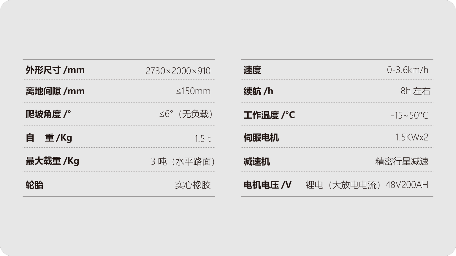 3-ton heavy-duty stable operation like walking on flat ground, 8-hour ultra long endurance automatic charging, modular expansion of lifting and feeding turnover, all-round intelligent control in extremely harsh environments of -15~50 ℃.