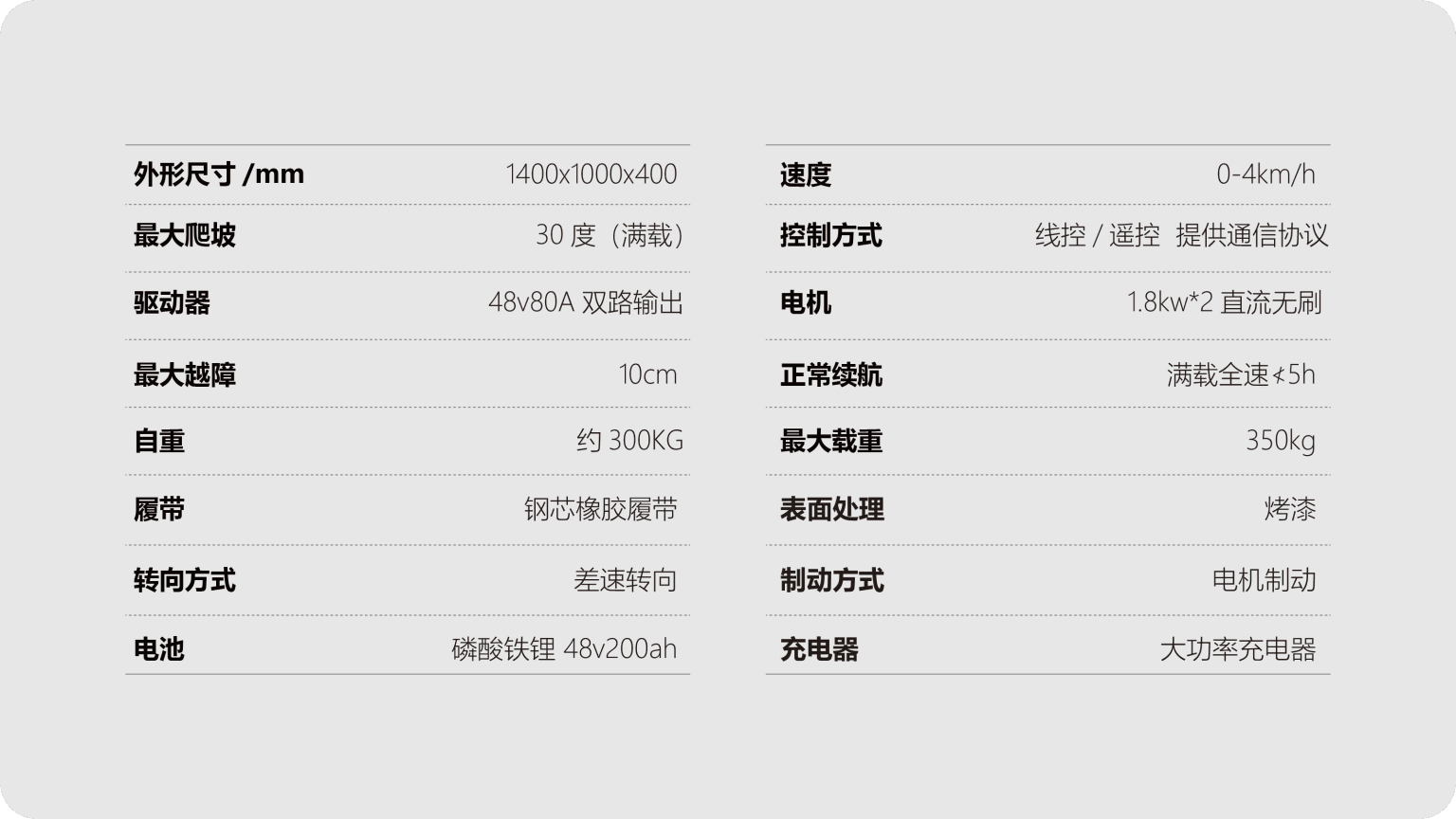 • Agricultural Heavy Load Expert: 350kg ultra large load+300kg self weight, 30 ° full load climbing without pressure, specially optimized for heavy load scenarios such as grain warehouse transportation and fertilizer machine mounting.