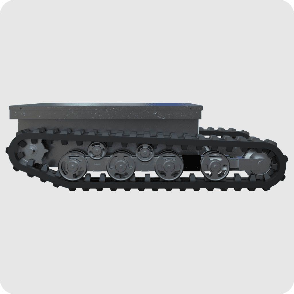 Agricultural track chassis, with stable structure and excellent off-road performance. Suitable for field work. Steel core tracks, load-bearing wheels, and driving wheels are all made of steel and are not easily detached from the tracks.